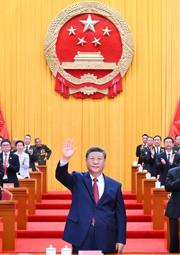 上午10時30分許,在歡快的樂曲聲中,習(xí)近平等領(lǐng)導(dǎo)同志走上主席臺,全場響起長時間的熱烈掌聲。