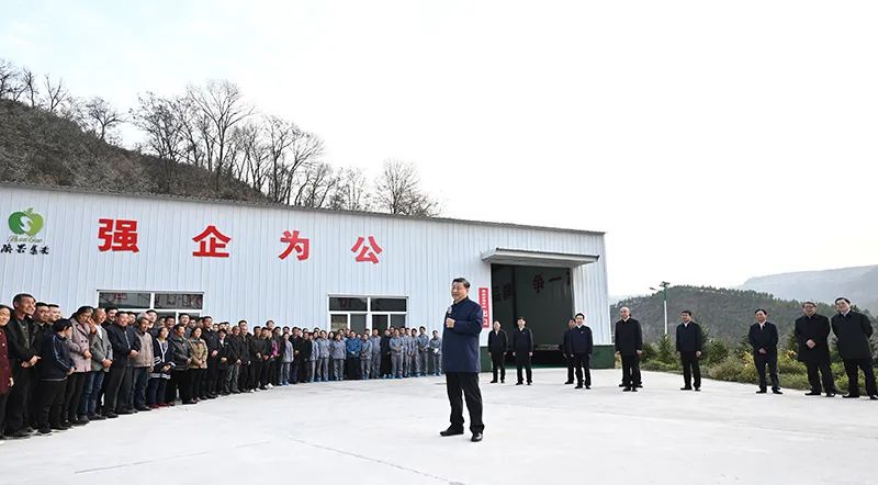 車間外,老鄉(xiāng)們聚集在一起,高聲向總書記問好。習(xí)近平同老鄉(xiāng)們拉起家常,回憶當(dāng)年他在陜北的知青歲月。習(xí)近平對老鄉(xiāng)們說,我在陜北生活了7年,當(dāng)年看到老鄉(xiāng)們生活很艱苦,心里就想著怎么樣讓大家生活好起來。這次來延安,看到一派碩果累累的豐收景象,交通條件大為改善,發(fā)生了翻天覆地的變化。過去陜北老鄉(xiāng)們修梯田、種莊稼,面朝黃土背朝天,掄起老鋤頭干活,廣種薄收,十分辛苦,如今山坡上退耕還林種上了蘋果,老鄉(xiāng)們有工作、有穩(wěn)定收入,孩子有好的教育,老人都有醫(yī)保,生活越來越好。從陜北的變化就可以看到中國的變化。習(xí)近平指出,現(xiàn)在,“兩個(gè)一百年”奮斗目標(biāo)的第一個(gè)百年目標(biāo)已經(jīng)實(shí)現(xiàn),絕對貧困問題解決了,老鄉(xiāng)們過上了好日子,但還要繼續(xù)努力往前走,讓生活越來越美好。陜北的氣候、光照、緯度、海拔等非常適宜發(fā)展蘋果種植,加上滴灌技術(shù)、矮化種植技術(shù)、選果生產(chǎn)線等不斷發(fā)展,就地賣出,銷路不愁,大力發(fā)展蘋果種植業(yè)可謂天時(shí)地利人和,這是最好的、最合適的產(chǎn)業(yè),大有前途。習(xí)近平強(qiáng)調(diào),中國共產(chǎn)黨是人民的黨,是為人民服務(wù)的黨,共產(chǎn)黨當(dāng)家就是要為老百姓辦事,把老百姓的事情辦好??照?wù)`國,實(shí)干興邦。要認(rèn)真學(xué)習(xí)貫徹黨的二十大精神,全面推進(jìn)鄉(xiāng)村振興,把富民政策一項(xiàng)一項(xiàng)落實(shí)好,加快推進(jìn)農(nóng)業(yè)農(nóng)村現(xiàn)代化,讓老鄉(xiāng)們生活越來越紅火。老鄉(xiāng)們爆發(fā)出雷鳴般的掌聲。