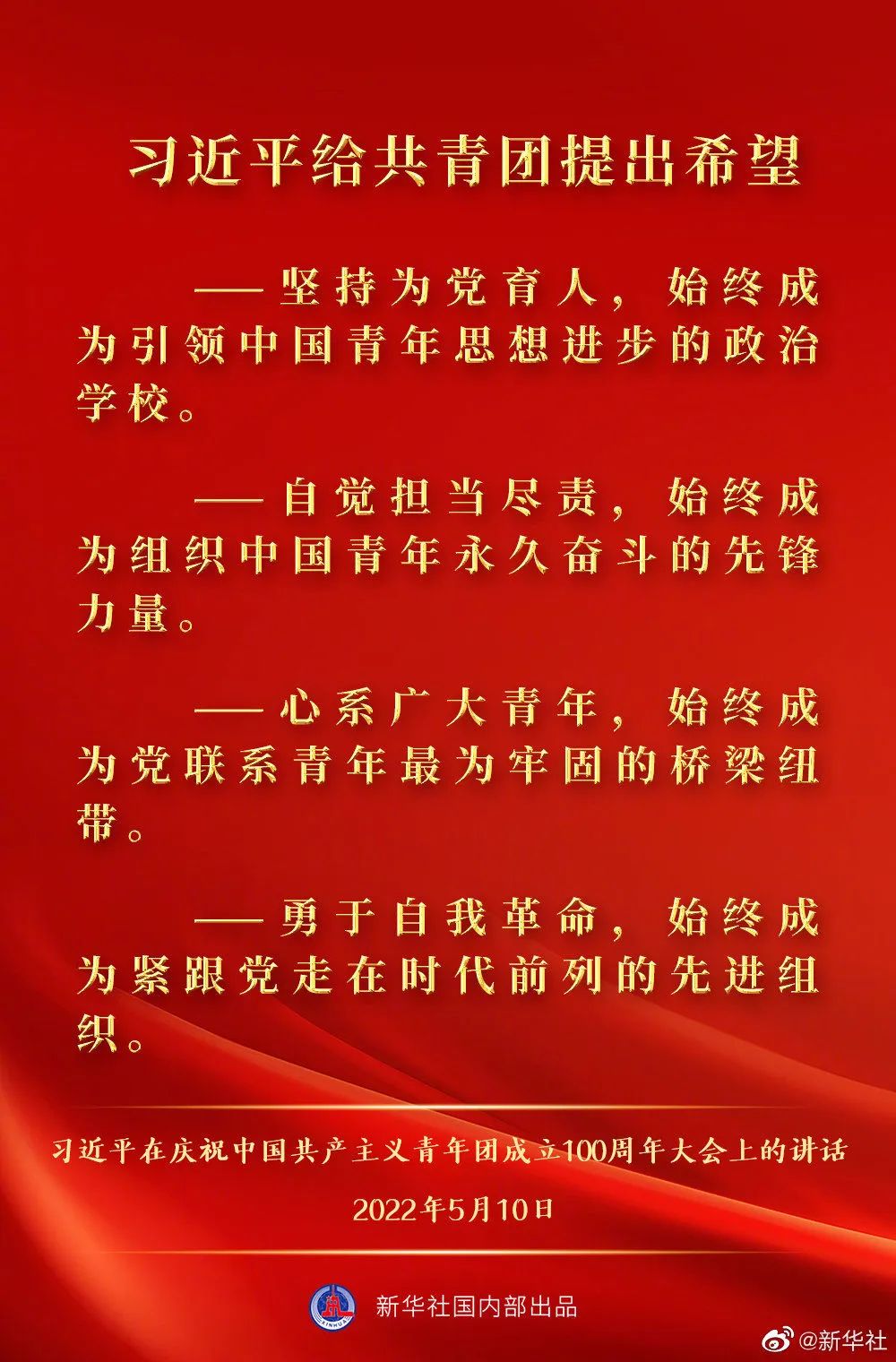 今天(10日)上午,慶祝中國共產(chǎn)主義青年團(tuán)成立100周年大會在北京人民大會堂隆重舉行。中共中央總書記、國家主席、中央軍委主席習(xí)近平出席大會并發(fā)表重要講話。