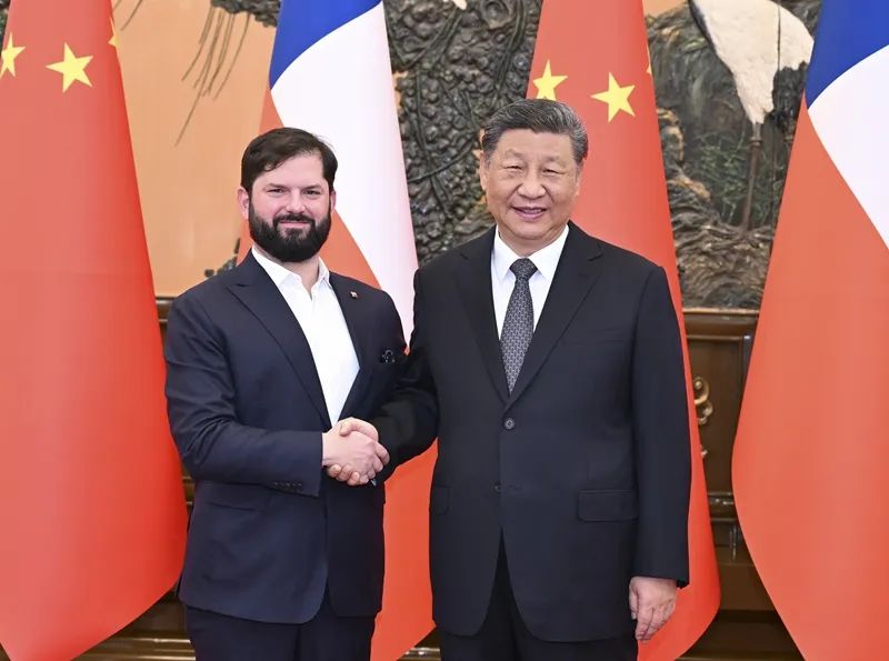 習近平強調,中方愿同智方夯實政治互信,堅持相互尊重、平等相待、互利共贏,加強治國理政經(jīng)驗交流,在涉及彼此核心利益和重大關切問題上堅定相互支持,維護各自主權、安全、發(fā)展利益。雙方要落實好共建“一帶一路”合作規(guī)劃,深化農林牧漁、產(chǎn)業(yè)投資、基礎設施、綠色礦產(chǎn)等領域合作,培育天文、極地、人工智能、生物醫(yī)藥、數(shù)字經(jīng)濟等新增長點。中方支持更多中國企業(yè)赴智利投資興業(yè),歡迎更多智利優(yōu)質產(chǎn)品進入中國市場。雙方要加強文明互鑒,開展好教育、文化、媒體、青年等交流活動,便利人員往來,為兩國關系長遠發(fā)展奠定良好社會民意基礎。當前,國際形勢變亂交織,單邊主義、保護主義逆流涌動,對國際經(jīng)貿秩序造成嚴重沖擊。作為多邊主義和自由貿易的堅定維護者,中智要加強多邊協(xié)作,捍衛(wèi)全球南方共同利益。