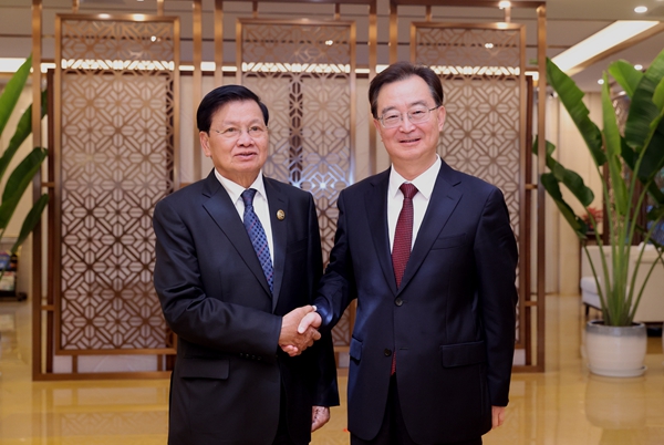 9月4日,王寧在西雙版納州景洪市會見老撾人民革命黨中央總書記、國家主席通倫。