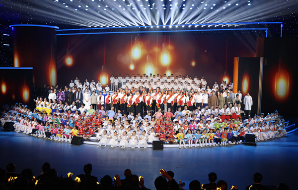 隨后,慶?;顒釉趲熒榫爸v述《先生頌》中拉開序幕,由師生自編自演的節(jié)目溫馨感人。情景分享《一天·一年·一輩子》、《薪火成炬》等深情歌頌廣大教師愛黨愛國、堅守講臺、默默耕耘的精神風貌,歌舞秀《背著書包來留學》、特殊教育情景劇《生命之光》等生動展現(xiàn)我省教育事業(yè)改革發(fā)展新突破新成就,尾聲環(huán)節(jié)全體演職人員合唱《每當我走過老師窗前》,熱烈的掌聲再次響起,向廣大教師致以深切的謝意。