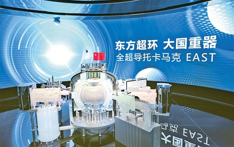2025年1月,我國有“人造太陽”之稱的全超導(dǎo)托卡馬克核聚變實驗裝置(EAST)在安徽合肥創(chuàng)造新的世界紀錄,首次完成1億攝氏度1000秒“高質(zhì)量燃燒”,標志我國聚變能源研究實現(xiàn)從基礎(chǔ)科學(xué)向工程實踐的重大跨越。圖為7月1日,在聚變創(chuàng)新展覽館拍攝的全超導(dǎo)托卡馬克核聚變實驗裝置(EAST)模型。 新華社記者 張鋮/攝