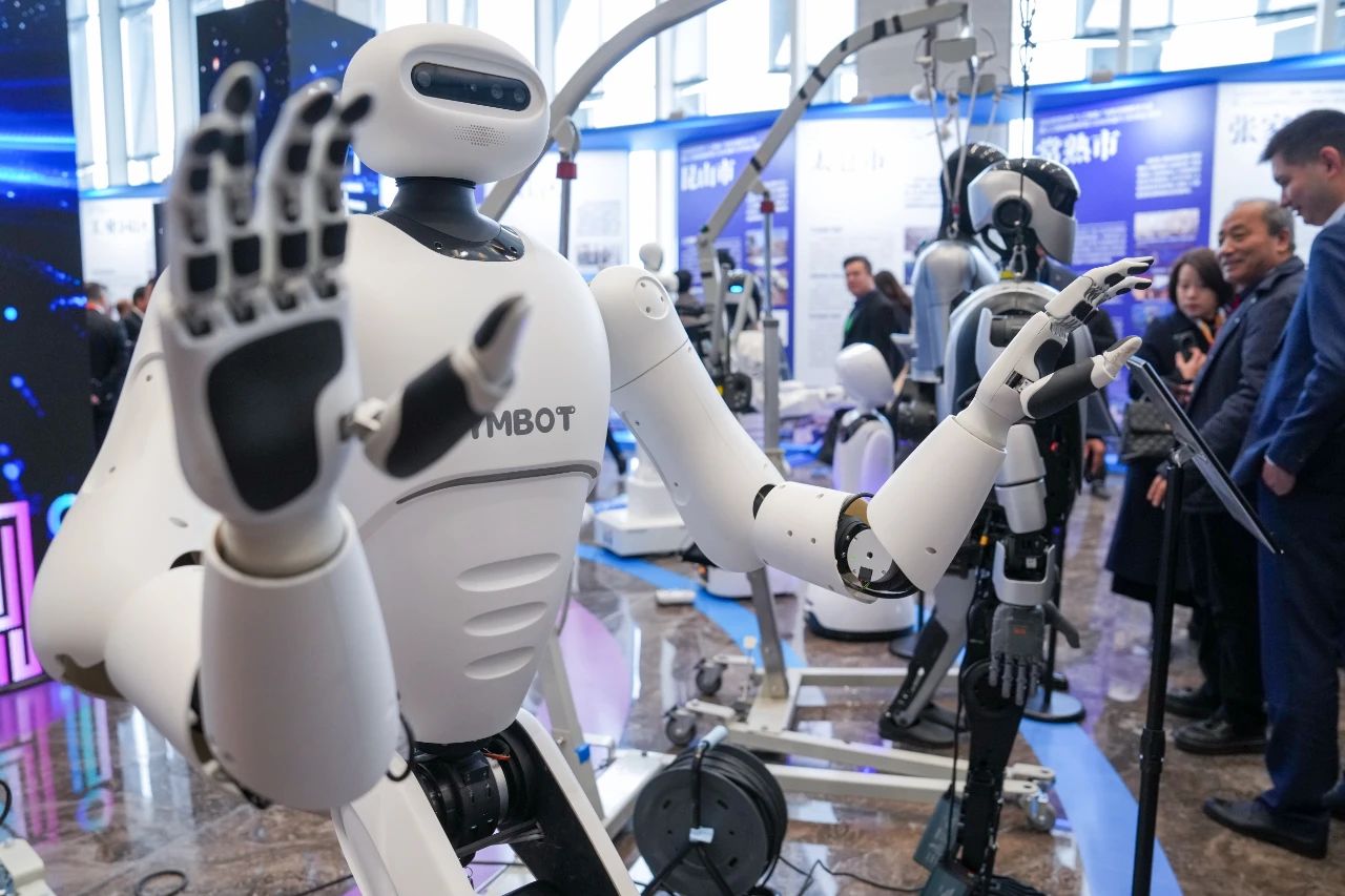 2025年蘇州市“人工智能+”創(chuàng)新發(fā)展推進(jìn)大會(huì)暨人工智能賦能新型工業(yè)化深度行(蘇州站)活動(dòng)于2月14日舉行,本次活動(dòng)以“共啟AI+新質(zhì)賦未來”為主題,集中展示蘇州人工智能領(lǐng)域發(fā)展情況。圖為在活動(dòng)現(xiàn)場(chǎng)展示的人形機(jī)器人。新華社記者 李博/攝