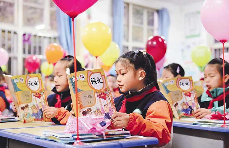 近年來,各地加快推廣普及國家通用語言文字,全面推行使用國家統(tǒng)編教材。圖為2025年2月17日,在貴州省黔東南苗族侗族自治州從江縣城關(guān)第三小學,學生們正在閱讀剛領(lǐng)到的新課本。?視覺中國 石宏輝/攝