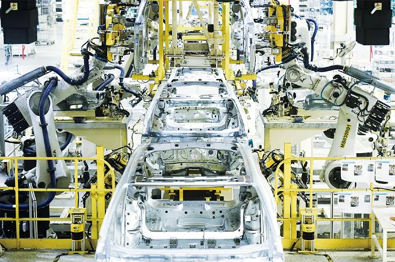 實(shí)體經(jīng)濟(jì)是金融的根基,金融是實(shí)體經(jīng)濟(jì)的血脈。近年來,浙江余姚市通過加大科技金融支持、推進(jìn)創(chuàng)新平臺(tái)建設(shè)等政策,不斷壯大優(yōu)勢(shì)產(chǎn)業(yè)集群,推進(jìn)制造業(yè)向高端化、智能化、綠色化發(fā)展。圖為2023年4月11日,在一家汽車企業(yè)的余姚工廠焊裝車間,智能機(jī)器人正在作業(yè)。 新華社記者 翁忻旸/攝