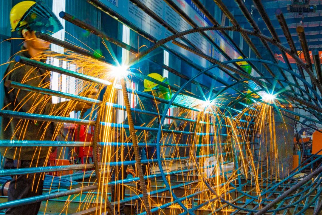 公路特別是高速公路是現(xiàn)代化基礎設施體系的重要組成部分,是經濟社會發(fā)展的重要支撐。圖為2023年9月14日,湖北武漢新港高速公路雙柳長江大橋施工現(xiàn)場,建設者正在進行鋼筋籠焊接施工。人民圖片 金偉/攝
