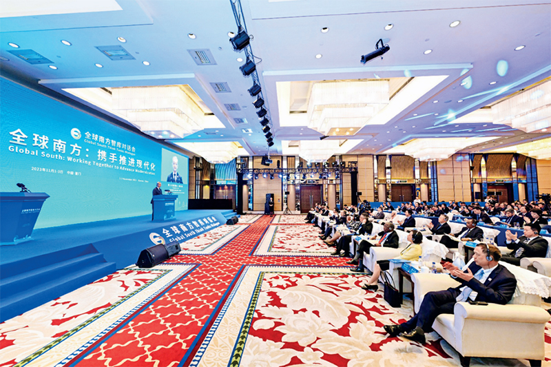 2023年11月2日,以“全球南方:攜手推進(jìn)現(xiàn)代化”為主題的全球南方智庫(kù)對(duì)話會(huì)在福建省廈門市開幕。來(lái)自巴西、俄羅斯、印度、南非等50多個(gè)新興市場(chǎng)國(guó)家和發(fā)展中國(guó)家的智庫(kù)學(xué)者、政黨代表、企業(yè)界人士等300余人與會(huì)。圖為與會(huì)代表出席全球南方智庫(kù)對(duì)話會(huì)開幕式。中聯(lián)部供圖