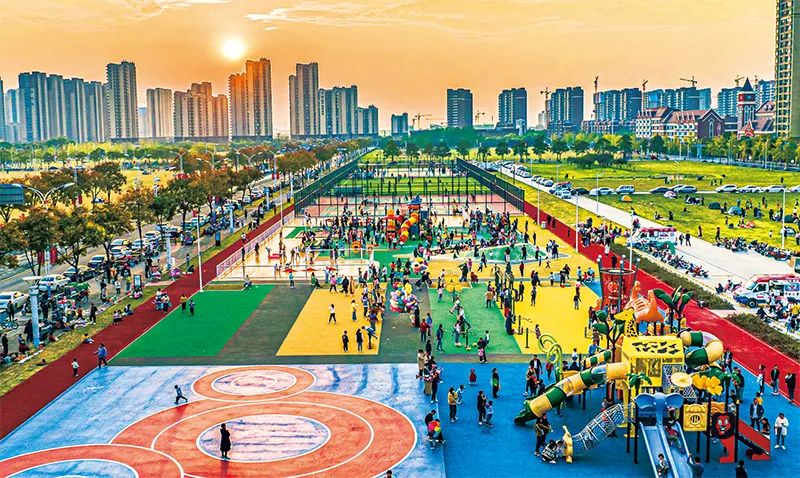 ?推進(jìn)中國式現(xiàn)代化,必須堅(jiān)持把實(shí)現(xiàn)人民對(duì)美好生活的向往作為現(xiàn)代化建設(shè)的出發(fā)點(diǎn)和落腳點(diǎn),不斷增進(jìn)民生福祉,提高人民生活品質(zhì)。圖為2022年10月15日,在江蘇省宿遷市蘇宿工業(yè)園區(qū)體育公園多功能運(yùn)動(dòng)場,市民正在健身、游玩。人民圖片 陳紅/攝