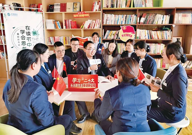 圖為2022年10月28日,江蘇移動(dòng)“青年愛研習(xí)”宣講“青騎兵隊(duì)”向一線員工宣講黨的二十大精神。 江蘇移動(dòng)團(tuán)委供圖