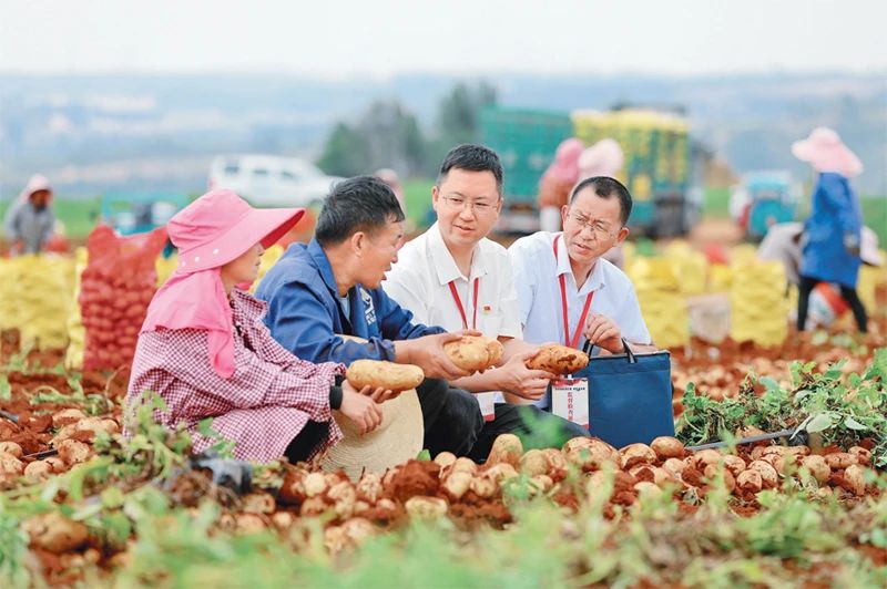 調(diào)查研究是謀事之基、成事之道。圖為2025年5月14日,云南省曲靖市陸良縣紀(jì)檢監(jiān)察干部在小百戶鎮(zhèn)普樂村走訪馬鈴薯種植戶,了解鄉(xiāng)村振興產(chǎn)業(yè)發(fā)展相關(guān)情況。 人民圖片 王勇/攝