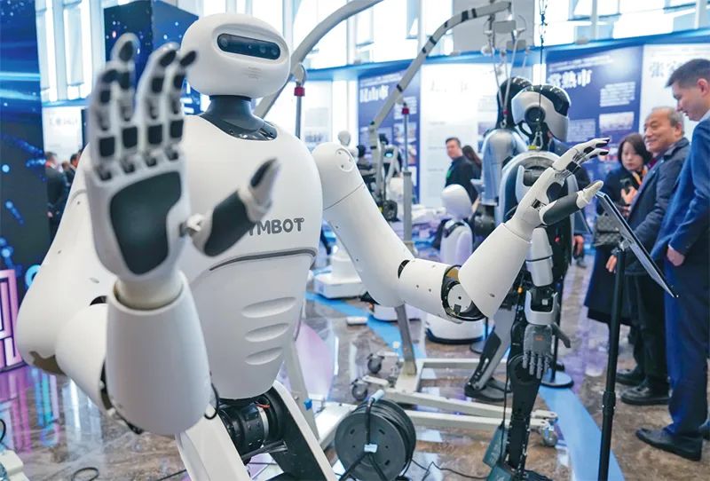 2025年蘇州市“人工智能+”創(chuàng)新發(fā)展推進(jìn)大會(huì)暨人工智能賦能新型工業(yè)化深度行(蘇州站)活動(dòng)于2月14日舉行,本次活動(dòng)以“共啟AI+新質(zhì)賦未來”為主題,集中展示蘇州人工智能領(lǐng)域發(fā)展情況。圖為在活動(dòng)現(xiàn)場(chǎng)展示的人形機(jī)器人。?新華社記者 李博/攝