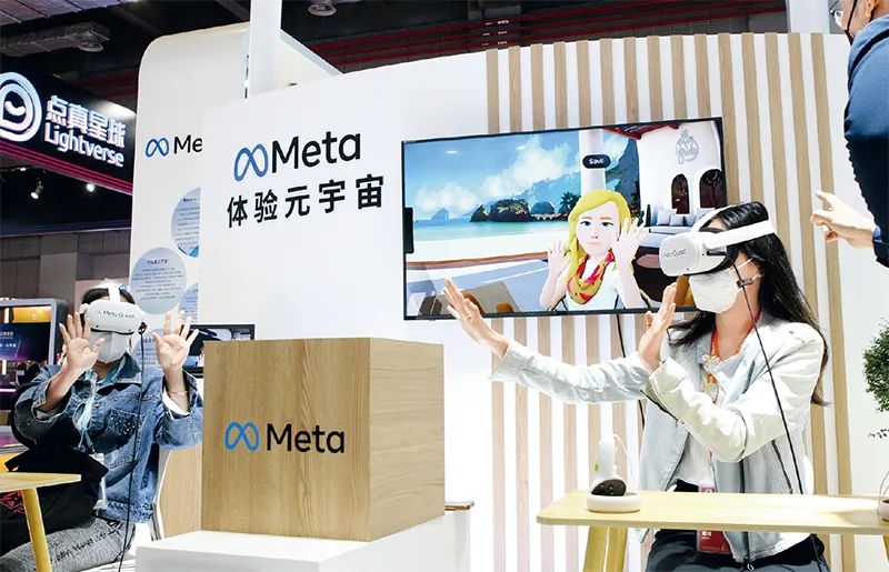 中國國際進(jìn)口博覽會連續(xù)舉辦5年,已經(jīng)成為中國構(gòu)建新發(fā)展格局的窗口、推動高水平開放的平臺、全球共享的國際公共產(chǎn)品。圖為2022年11月7日,在第五屆進(jìn)博會技術(shù)裝備展區(qū)的人工智能專區(qū),體驗者借助VR頭戴設(shè)備感受在虛擬工作空間“隔空擊掌”。 新華社記者 侯俊/攝
