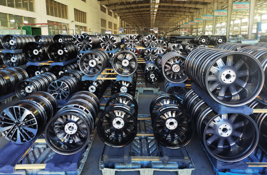 云南省曲靖市富源縣工業(yè)園區(qū),云南富源今飛輪轂制造有限公司利用云鋁澤鑫鋁業(yè)電解的鋁液,生產(chǎn)汽車輪轂。陳永強(qiáng) 攝