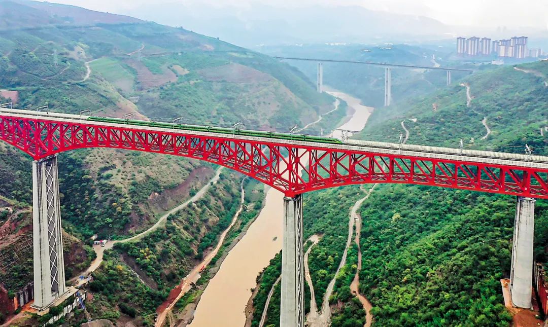 奔馳在中老鐵路紅河大橋上的列車。中鐵昆明局供圖