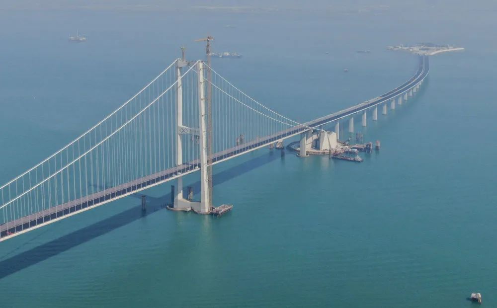 2023年11月28日,粵港澳大灣區(qū)超級(jí)工程深中通道主線正式貫通,這是深中通道伶仃洋大橋東塔及西人工島(無(wú)人機(jī)照片)。新華社記者 鄧華 攝
