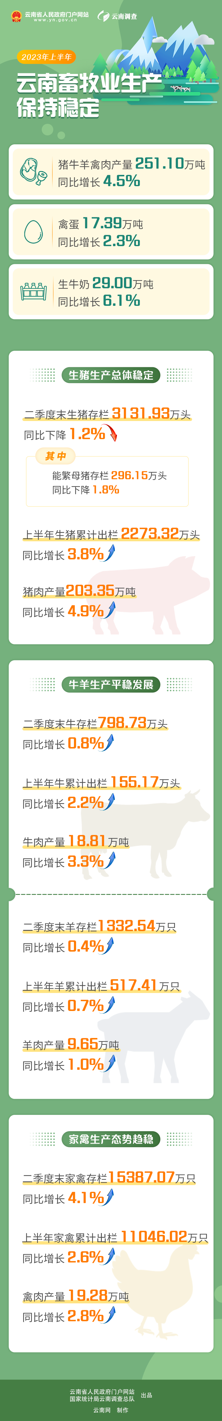 數(shù)讀云南丨2023年上半年云南畜牧業(yè)生產(chǎn)保持穩(wěn)定