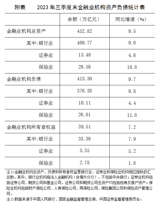 2023年三季度末金融業(yè)機構(gòu)總資產(chǎn)452.82萬億元