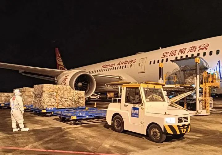 ?11月24日,??诿捞m國際機(jī)場的工作人員在停機(jī)坪裝運(yùn)貨物。次日凌晨,??凇ㄌm克??透呢浂ㄆ谥揠H航線正式恢復(fù)。新華社發(fā)