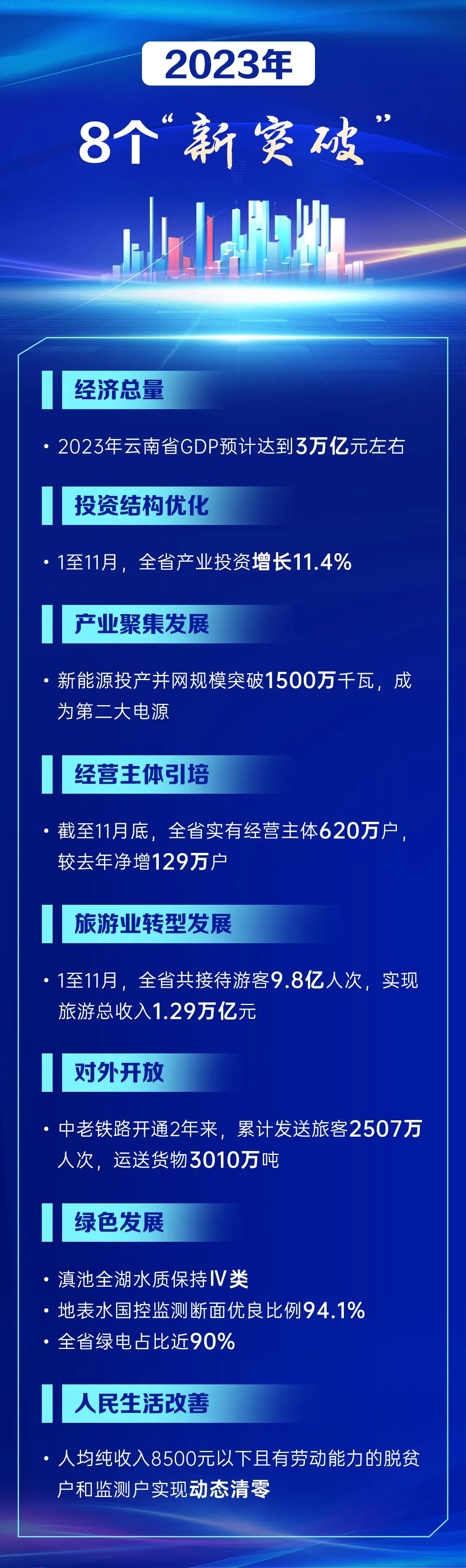 2023年,我省緊緊抓住經(jīng)濟(jì)轉(zhuǎn)型升級(jí)這個(gè)主要矛盾,大力發(fā)展資源經(jīng)濟(jì)、園區(qū)經(jīng)濟(jì)、口岸經(jīng)濟(jì),著力推進(jìn)市場(chǎng)化、產(chǎn)業(yè)化、法治化、生態(tài)化、數(shù)字化進(jìn)程,大抓營(yíng)商環(huán)境和招商引資。這一年,全省經(jīng)濟(jì)發(fā)展保持穩(wěn)中向好態(tài)勢(shì),在經(jīng)濟(jì)總量增長(zhǎng)等8個(gè)方面有新突破。