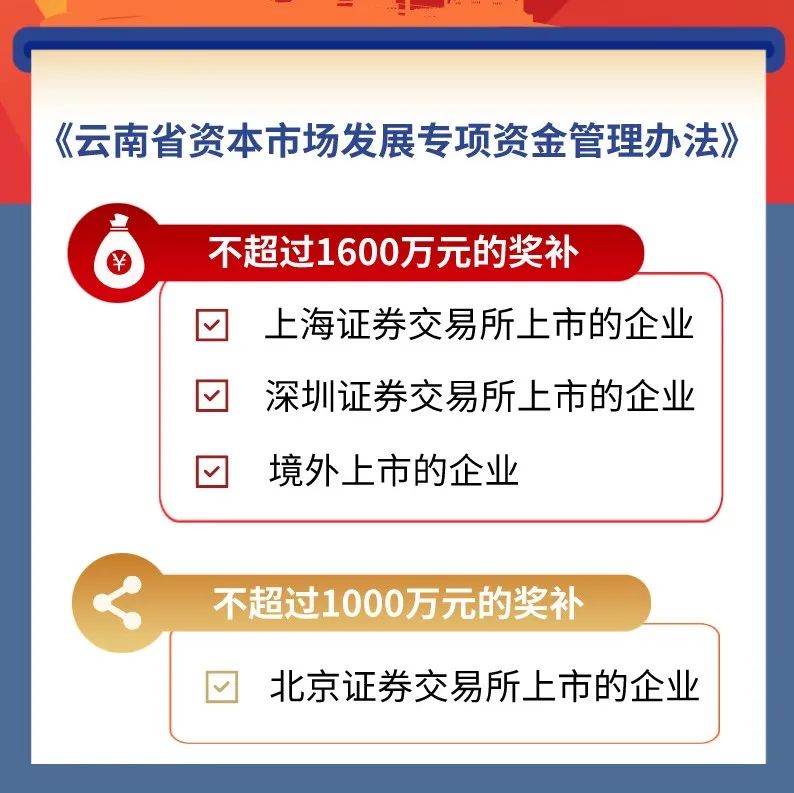 印發(fā)《云南省資本市場發(fā)展專項(xiàng)資金管理辦法》,獎(jiǎng)補(bǔ)標(biāo)準(zhǔn)居全國前列,為我省資本市場發(fā)展提供更為完善的資金政策保障。